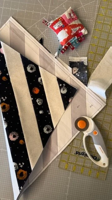 Take your sweet time trimming those 45° angles on the strip sets—rushing here will haunt you later.