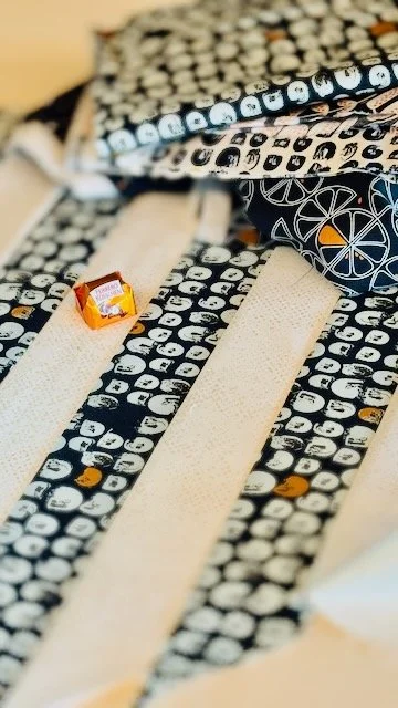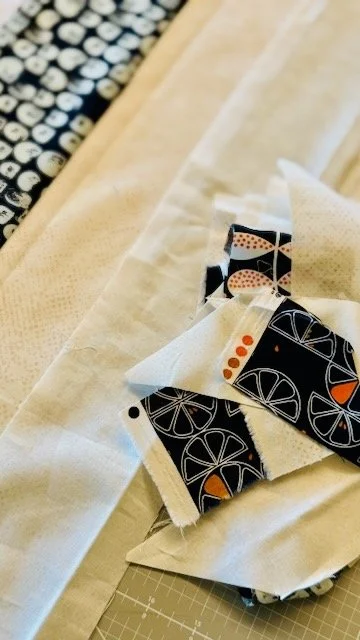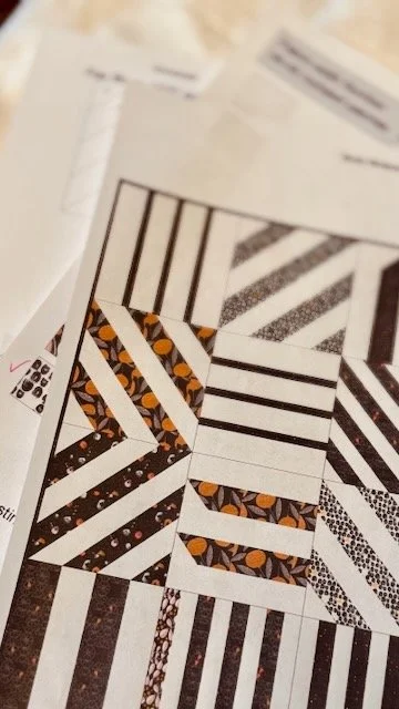 I kept it simple: just the black and midnight prints from BALISONG, plus a whisper of Coconut white. The result is clean, graphic, and just moody enough to feel like that perfect evening when the day finally chills out. Oh, and there's a hint of rust sneaking in—because even mysterious quilts need a little warmth.