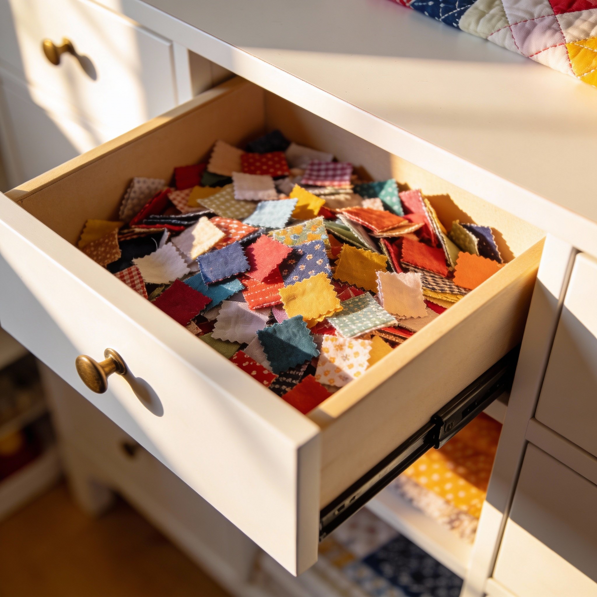 Completely overflowing with tiny fabric scraps.