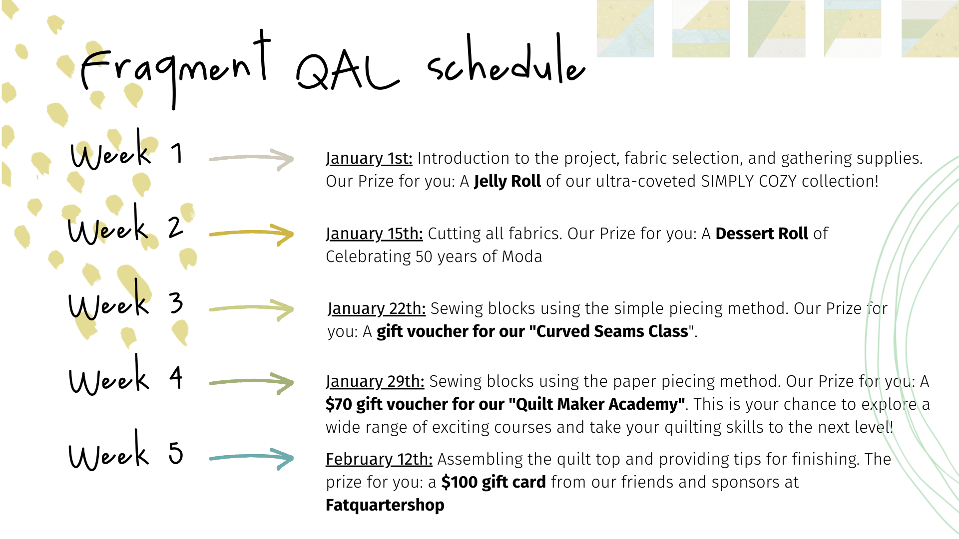 We’re so thrilled that you want to join us for the QAL, you're even a bit too early! Our official start is on January 1st 2025 and here is our schedule: